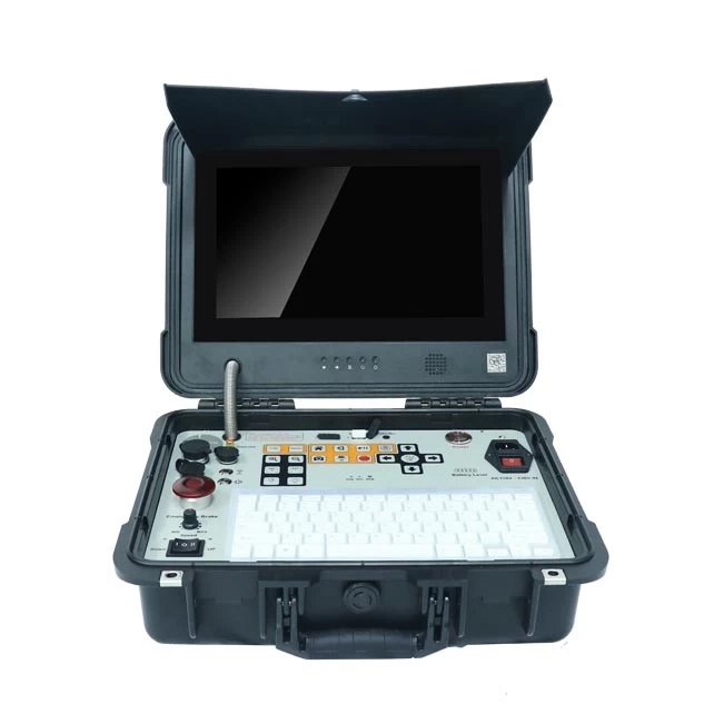 The PT50 deep well inspection camera D10000PT with 360° rotation video camera,the push cable wheel and the surface control unit.Fresh water depth:100M,manual focus,13inch screen.